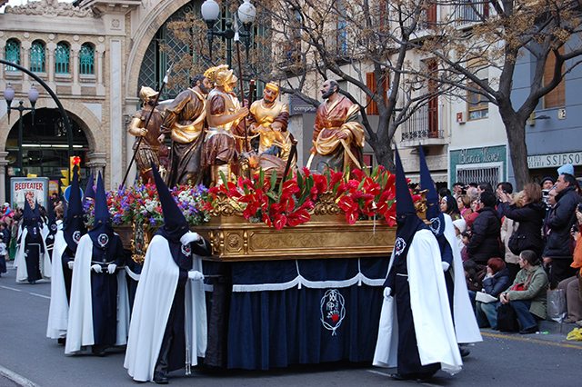 Semana Santa processions are also known as ‘penance processions’ and involve members of the brotherhood (nazarenos) parading from their church to the city’s cathedral. Elaborate floats are carried on the shoulders of the Brotherhood, with the floats weighing almost 2 metric tons. The floats carry large statutes depicting the Passion of the Christ, and some hold local artistry as well.